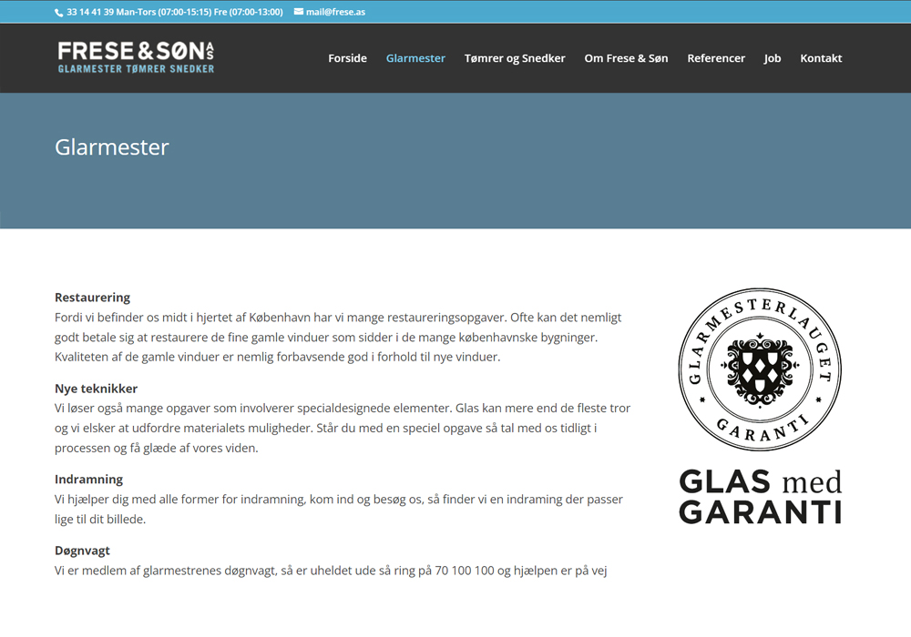 Frese.as is a website developed for a glassmaster business. The company previously had an outdated, non-responsive site.